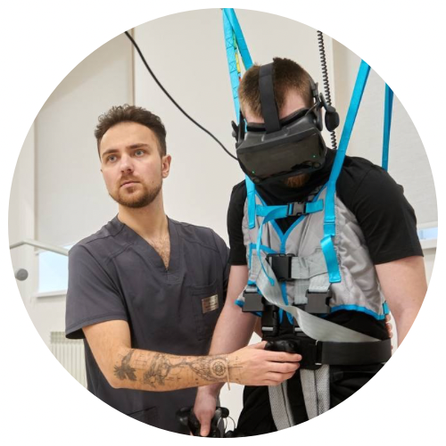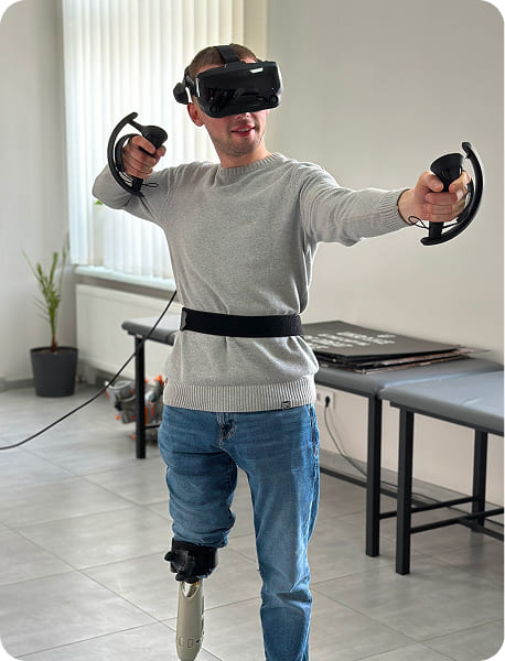 VRNOW допомагає відновити контроль рівноваги через вправи, що залучають положення тіла, переміщення центру маси та координацію рухів у динамічних віртуальних середовищах та вправах